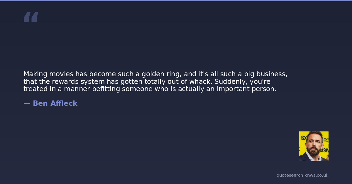 Making movies has become such a golden ring, and it's all such a big business, that the rewards system has gotten totally out of whack. Suddenly, you're treated in a manner befitting someone who is actually an important person.