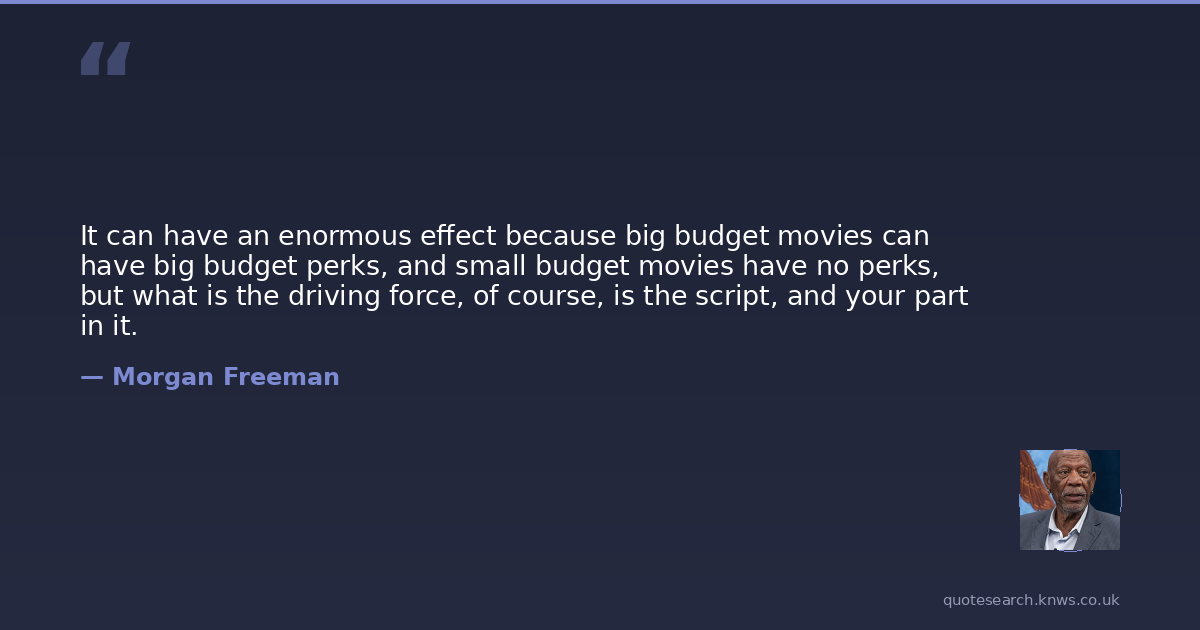 It can have an enormous effect because big budget movies can have big budget perks, and small budget movies have no perks, but what is the driving force, of course, is the script, and your part in it.