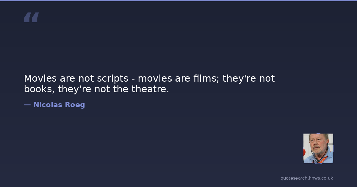 Movies are not scripts - movies are films; they're not books, they're not the theatre.