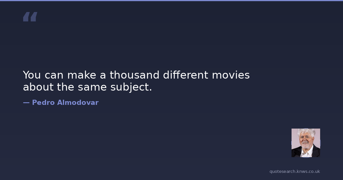 Pedro Almodovar was a contemporary Spanish filmmaker. Pedro Almodóvar Caballero is a Spanish film director, screenwriter and author. His films are distinguished by melodrama, irreverent humour, bold colour, glossy décor, quotations from popular culture, and complex narratives. Read more on Wikipedia →