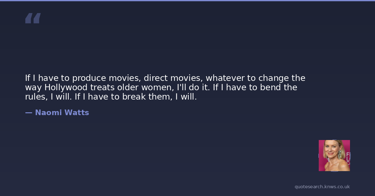 If I have to produce movies, direct movies, whatever to change the way Hollywood treats older women, I'll do it. If I have to bend the rules, I will. If I have to break them, I will.