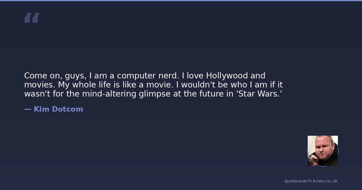 Come on, guys, I am a computer nerd. I love Hollywood and movies. My whole life is like a movie. I wouldn't be who I am if it wasn't for the mind-altering glimpse at the future in 'Star Wars.'