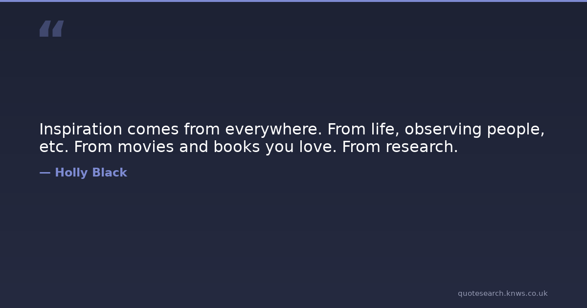 Inspiration comes from everywhere. From life, observing people, etc. From movies and books you love. From research.