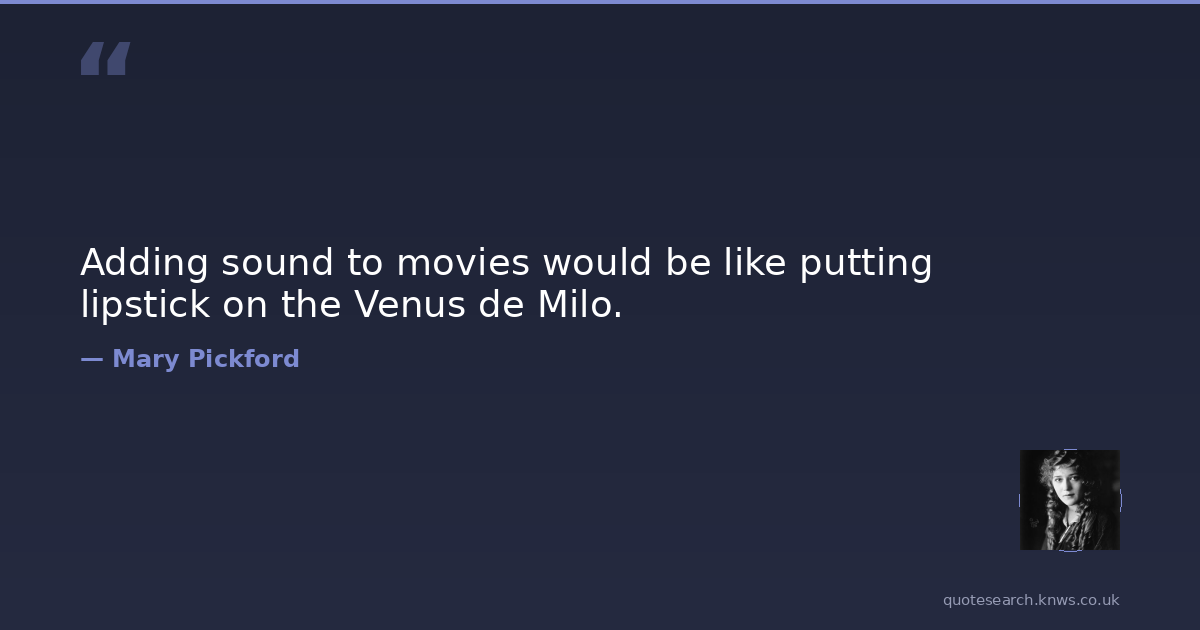 Adding sound to movies would be like putting lipstick on the Venus de Milo.