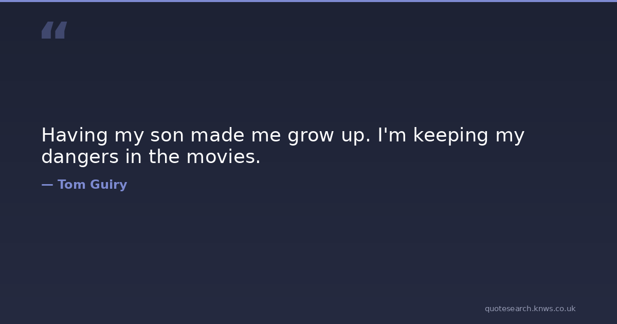 Having my son made me grow up. I'm keeping my dangers in the movies. Son Me Grow Download Image Share on X Share on Facebook Copy Link