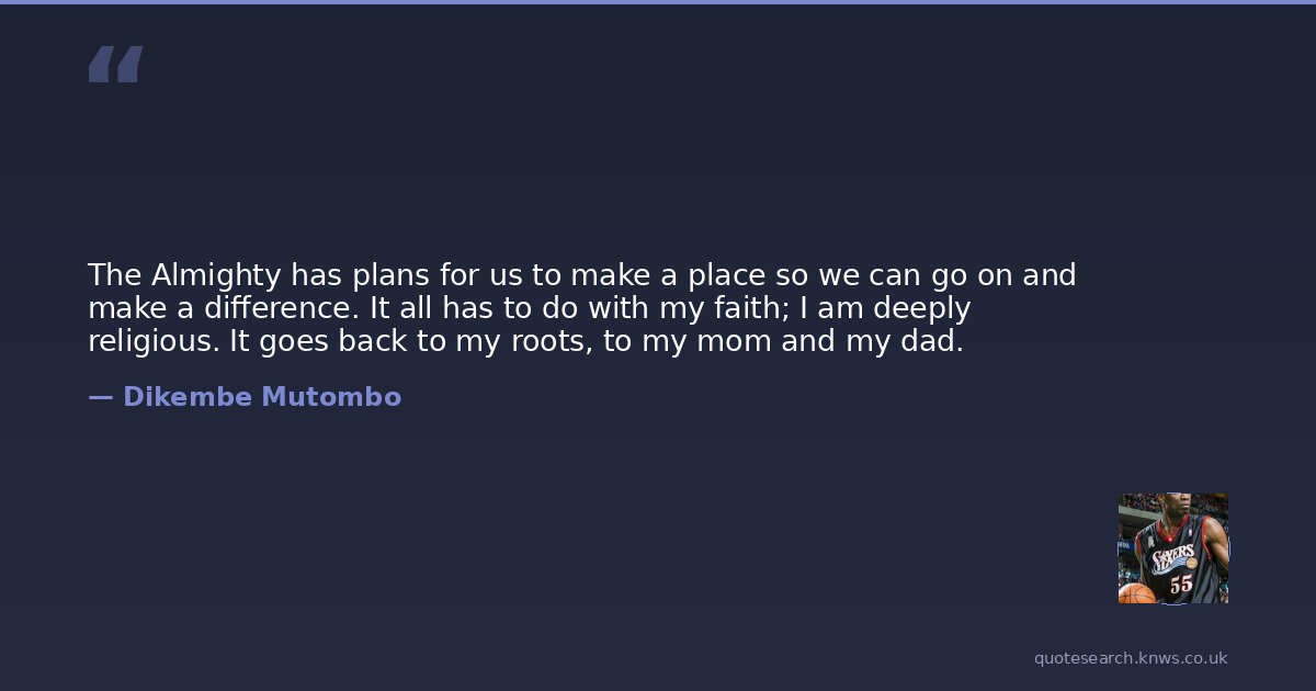 The Almighty has plans for us to make a place so we can go on and make a difference. It all has to do with my faith; I am deeply religious. It goes back to my roots, to my mom and my dad.