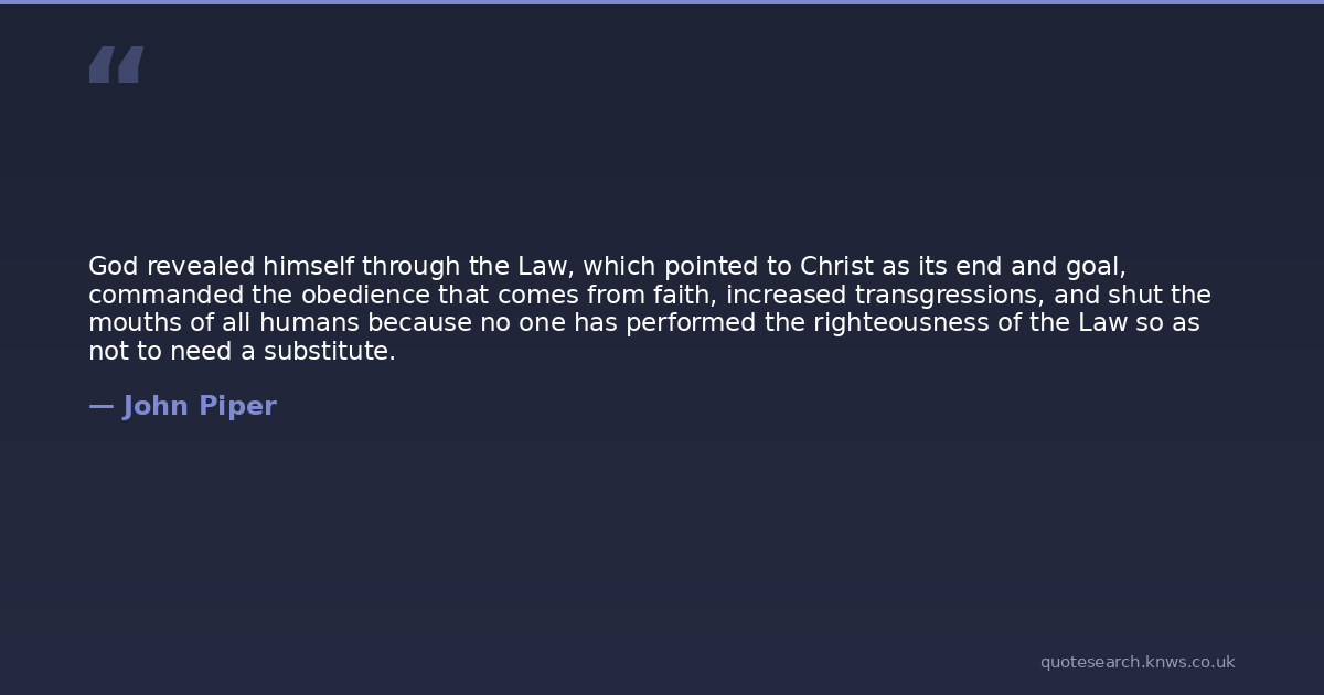 God revealed himself through the Law, which pointed to Christ as its end and goal, commanded the obedience that comes from faith, increased transgressions, and shut the mouths of all humans because no one has performed the righteousness of the Law so as not to need a substitute.