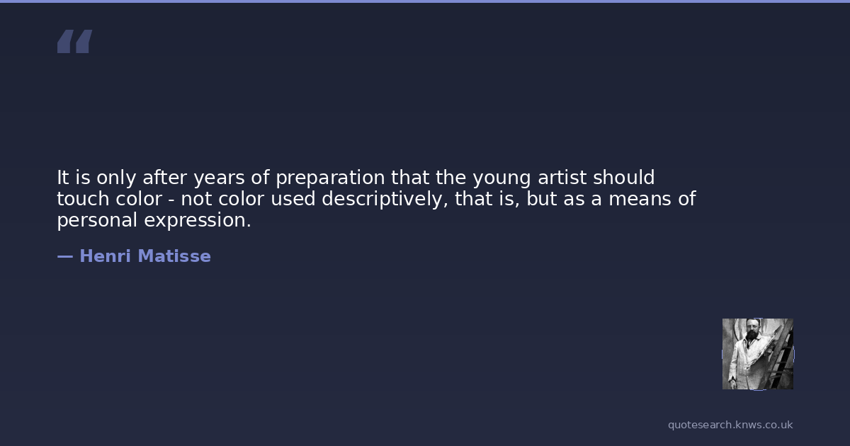 It is only after years of preparation that the young artist should touch color - not color used descriptively, that is, but as a means of personal expression.