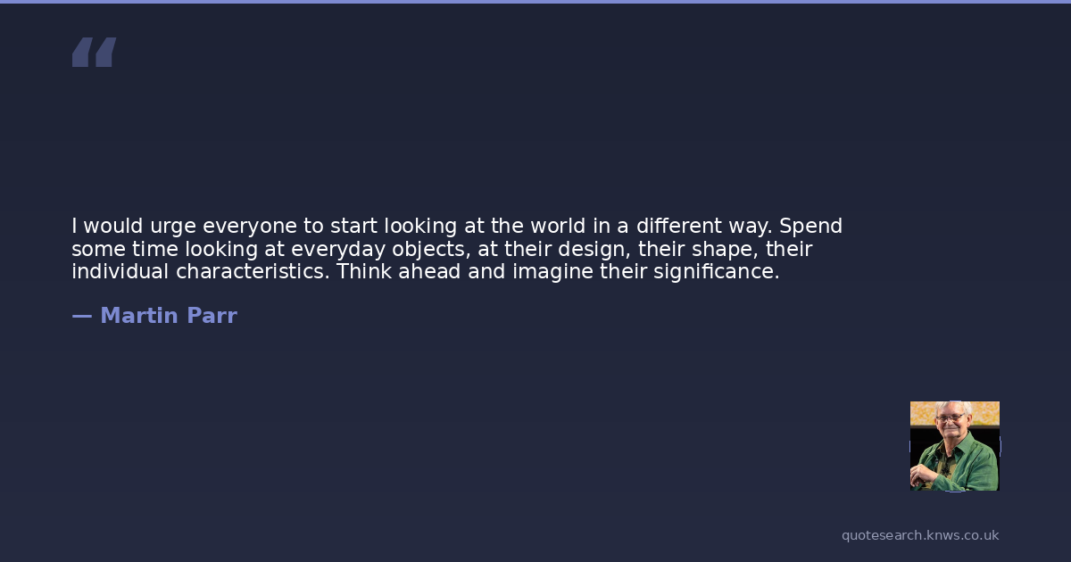 I would urge everyone to start looking at the world in a different way. Spend some time looking at everyday objects, at their design, their shape, their individual characteristics. Think ahead and imagine their significance.