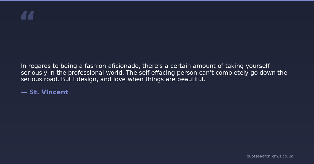 In regards to being a fashion aficionado, there's a certain amount of taking yourself seriously in the professional world. The self-effacing person can't completely go down the serious road. But I design, and love when things are beautiful.