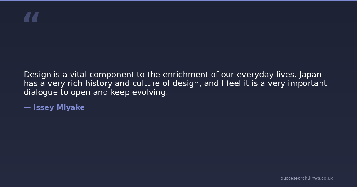 Design is a vital component to the enrichment of our everyday lives. Japan has a very rich history and culture of design, and I feel it is a very important dialogue to open and keep evolving.