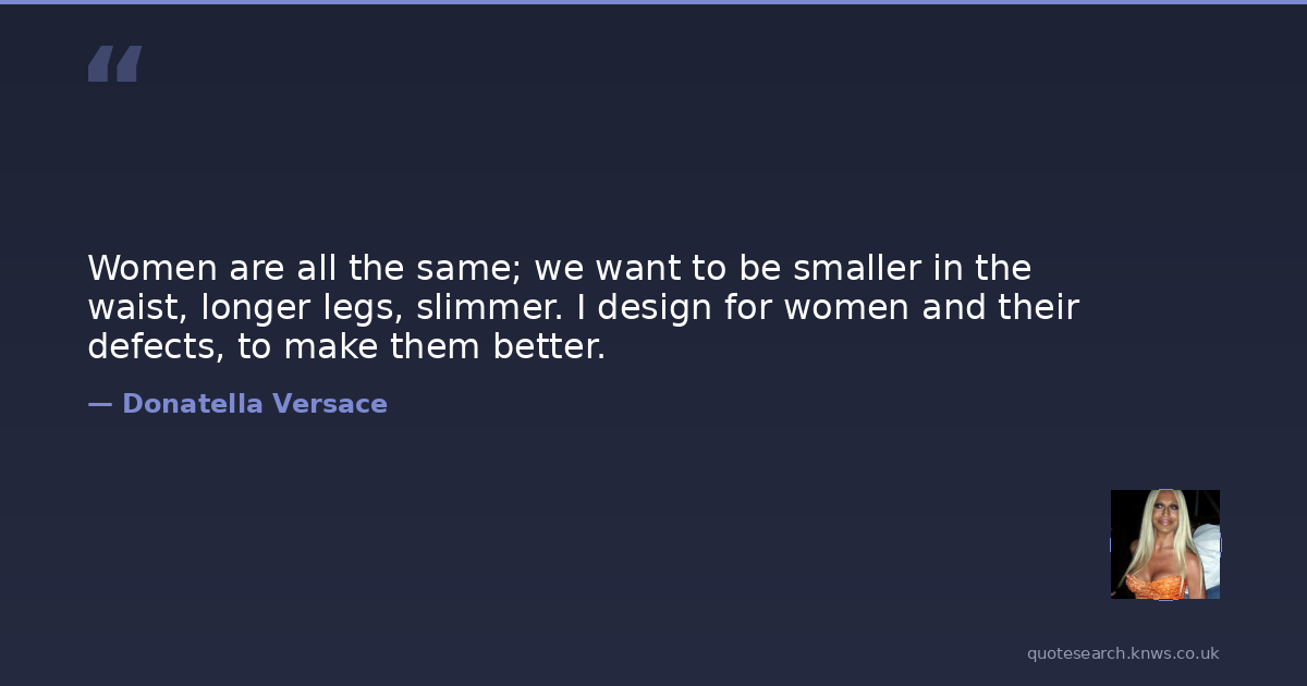 Women are all the same; we want to be smaller in the waist, longer legs, slimmer. I design for women and their defects, to make them better.