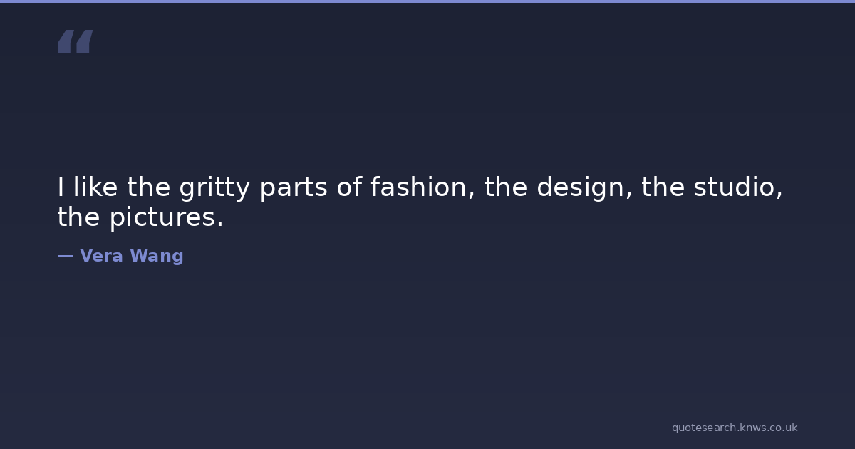 I like the gritty parts of fashion, the design, the studio, the pictures.