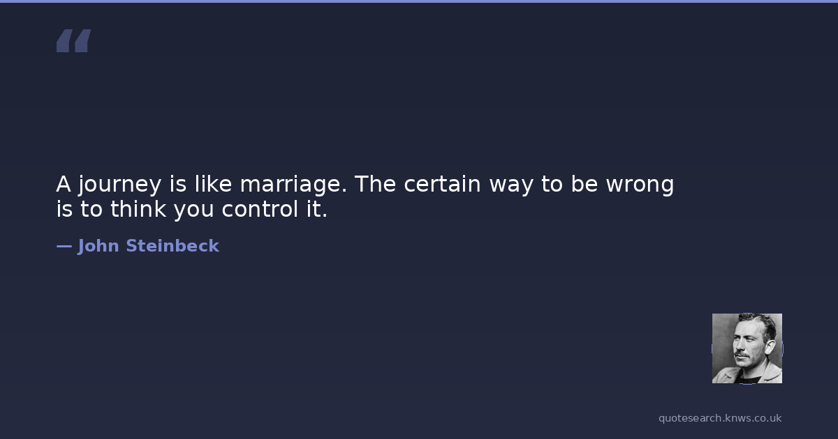 A journey is like marriage. The certain way to be wrong is to think you control it.