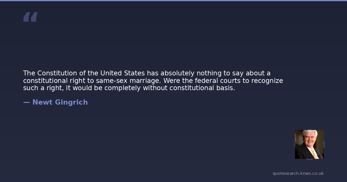 The Constitution of the United States has absolutely nothing to say about a constitutional right to same-sex marriage. Were the federal courts to recognize such a right, it would be completely without constitutional basis.