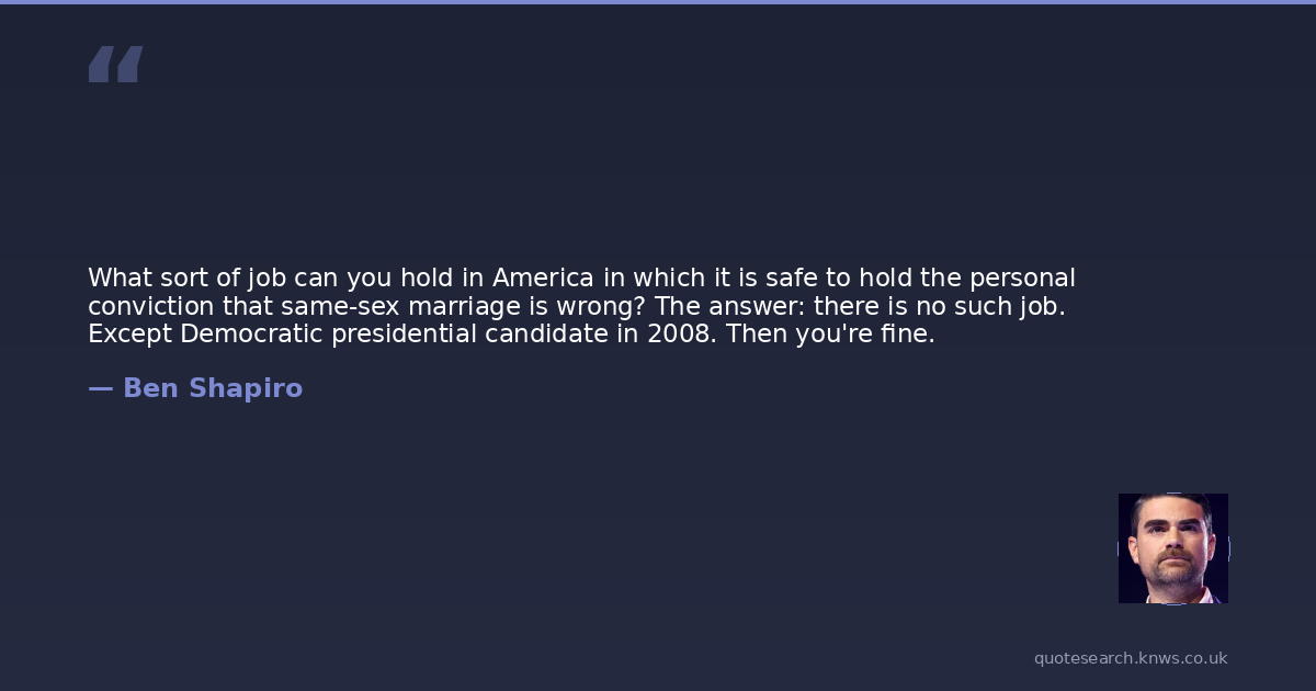 What sort of job can you hold in America in which it is safe to hold the personal conviction that same-sex marriage is wrong? The answer: there is no such job. Except Democratic presidential candidate in 2008. Then you're fine.