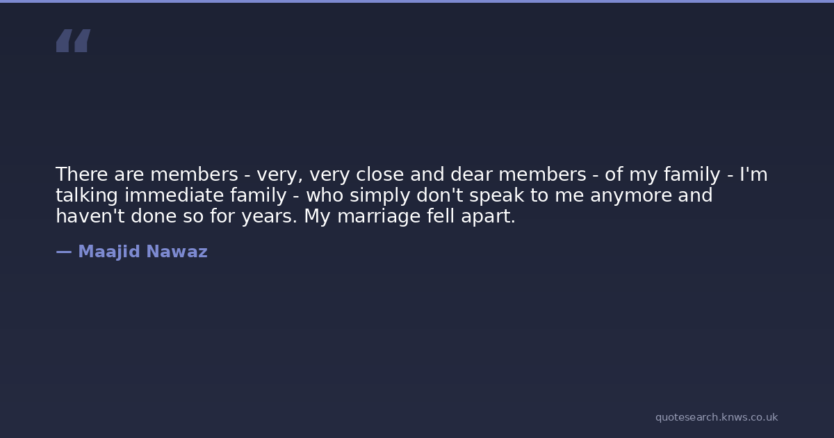 There are members - very, very close and dear members - of my family - I'm talking immediate family - who simply don't speak to me anymore and haven't done so for years. My marriage fell apart.