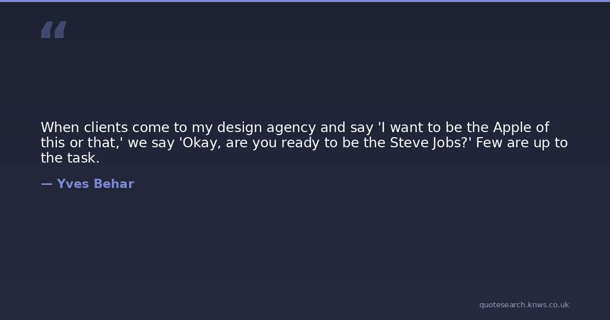 When clients come to my design agency and say 'I want to be the Apple of this or that,' we say 'Okay, are you ready to be the Steve Jobs?' Few are up to the task.