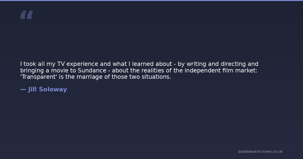 I took all my TV experience and what I learned about - by writing and directing and bringing a movie to Sundance - about the realities of the independent film market: 'Transparent' is the marriage of those two situations.