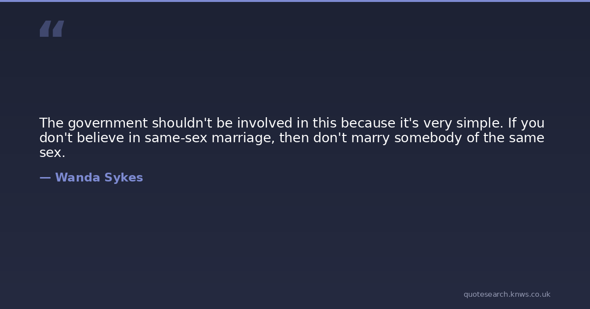 The government shouldn't be involved in this because it's very simple. If you don't believe in same-sex marriage, then don't marry somebody of the same sex.