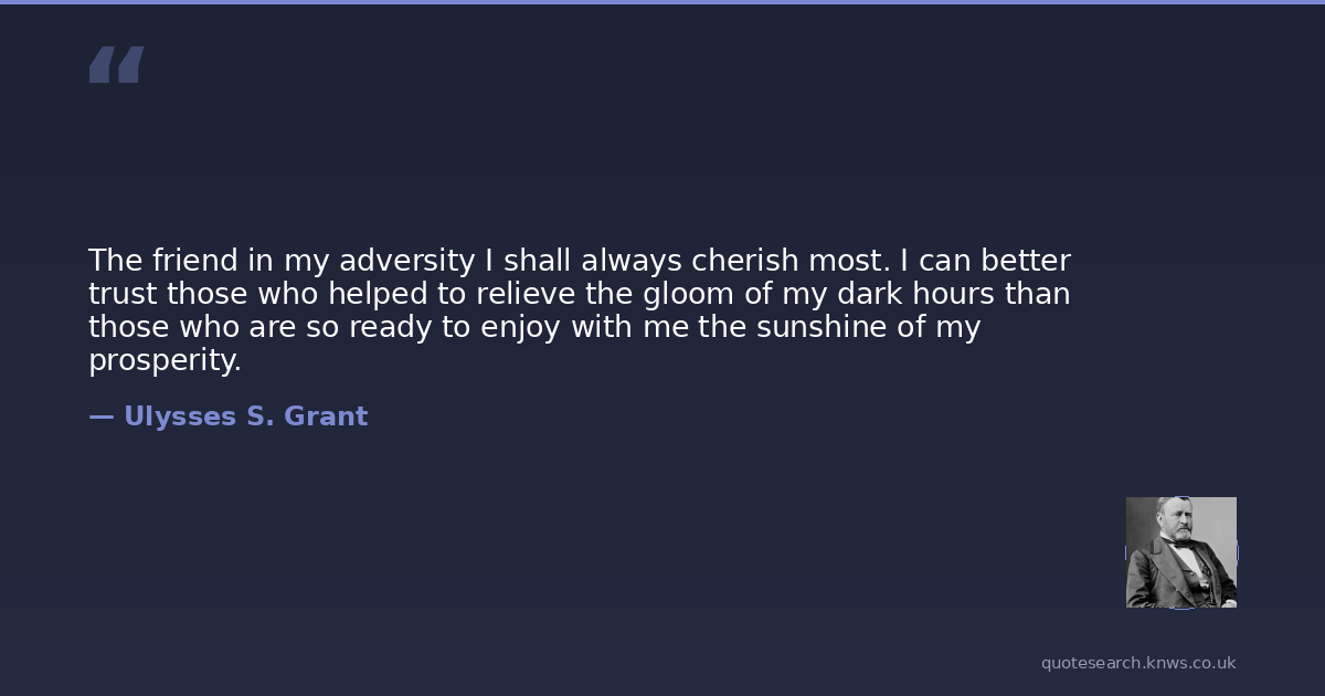 The friend in my adversity I shall always cherish most. I can better trust those who helped to relieve the gloom of my dark hours than those who are so ready to enjoy with me the sunshine of my prosperity.