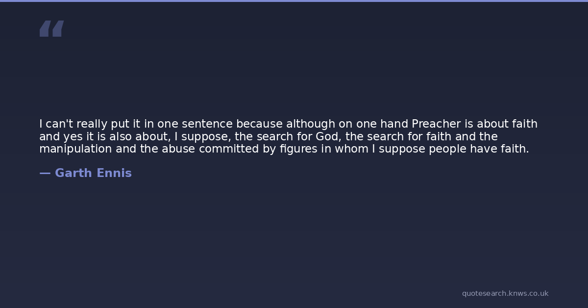 I can't really put it in one sentence because although on one hand Preacher is about faith and yes it is also about, I suppose, the search for God, the search for faith and the manipulation and the abuse committed by figures in whom I suppose people have faith.