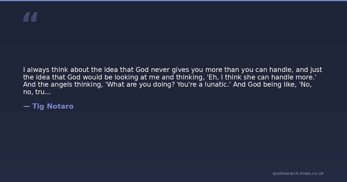 I always think about the idea that God never gives you more than you can handle, and just the idea that God would be looking at me and thinking, 'Eh, I think she can handle more.' And the angels thinking, 'What are you doing? You're a lunatic.' And God being like, 'No, no, trust me. She can handle this.'
