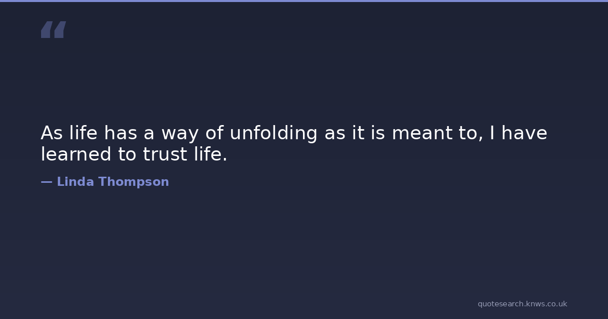 As life has a way of unfolding as it is meant to, I have learned to trust life. Life Way I Have Learned Download Image Share on X Share on Facebook Copy Link