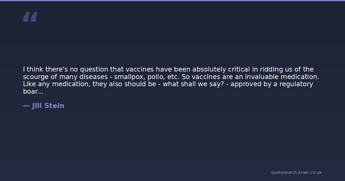 I think there's no question that vaccines have been absolutely critical in ridding us of the scourge of many diseases - smallpox, polio, etc. So vaccines are an invaluable medication. Like any medication, they also should be - what shall we say? - approved by a regulatory board that people can trust.