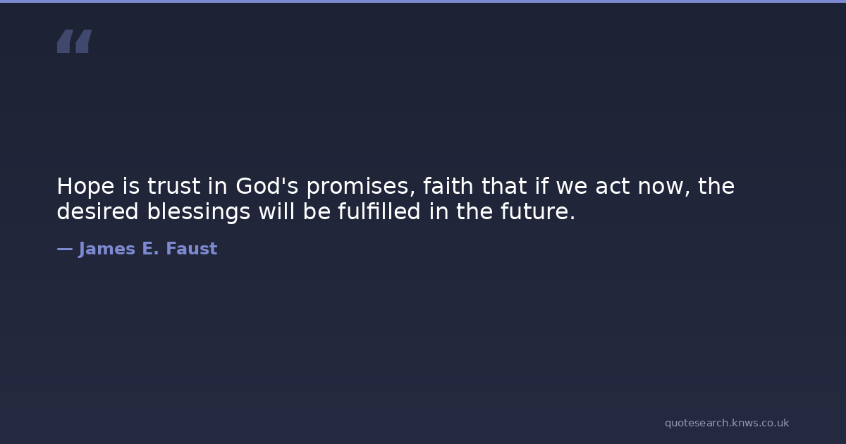 Hope is trust in God's promises, faith that if we act now, the desired blessings will be fulfilled in the future.