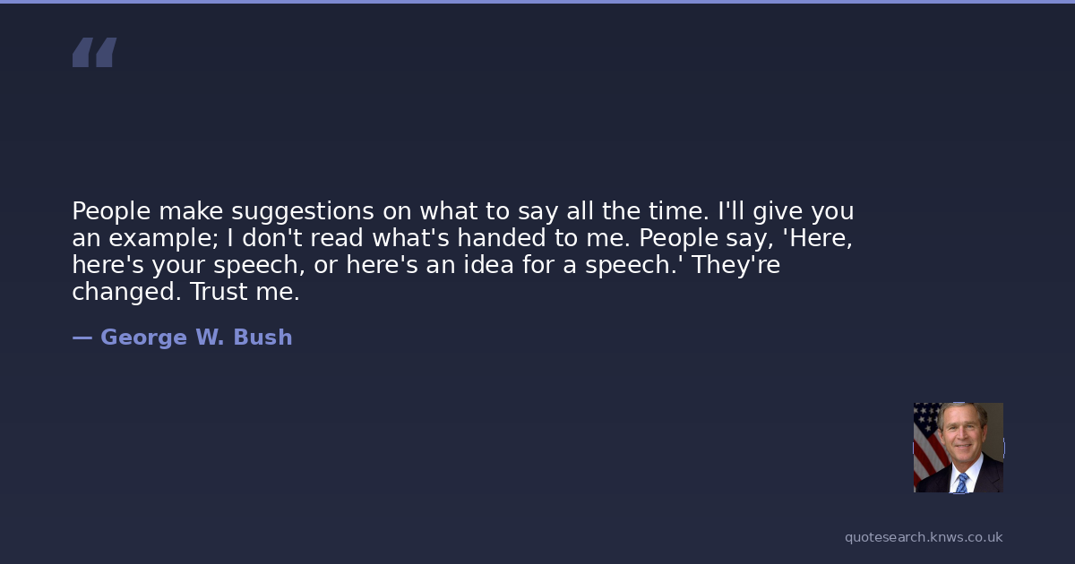 People make suggestions on what to say all the time. I'll give you an example; I don't read what's handed to me. People say, 'Here, here's your speech, or here's an idea for a speech.' They're changed. Trust me.