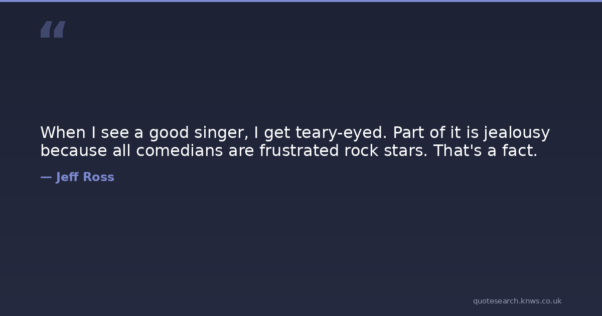 When I see a good singer, I get teary-eyed. Part of it is jealousy because all comedians are frustrated rock stars. That's a fact.