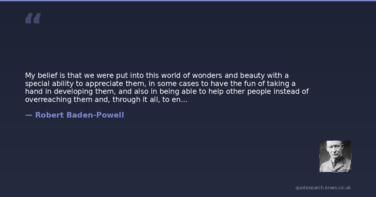 My belief is that we were put into this world of wonders and beauty with a special ability to appreciate them, in some cases to have the fun of taking a hand in developing them, and also in being able to help other people instead of overreaching them and, through it all, to enjoy life - that is, to be happy.