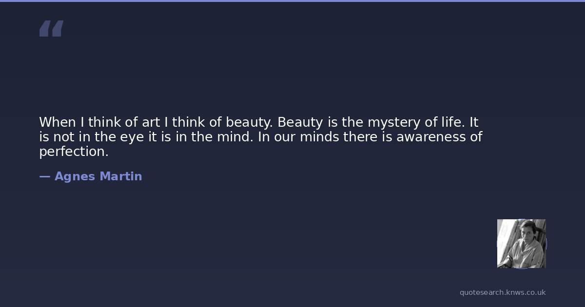 When I think of art I think of beauty. Beauty is the mystery of life. It is not in the eye it is in the mind. In our minds there is awareness of perfection.