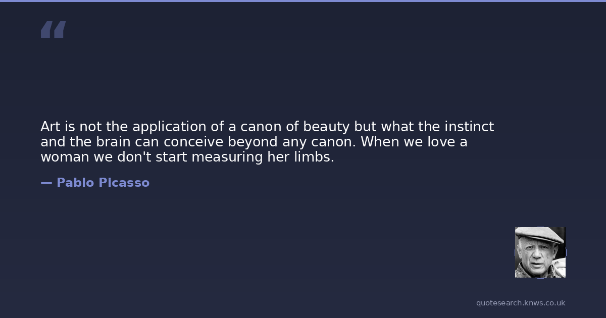 Art is not the application of a canon of beauty but what the instinct and the brain can conceive beyond any canon. When we love a woman we don't start measuring her limbs.