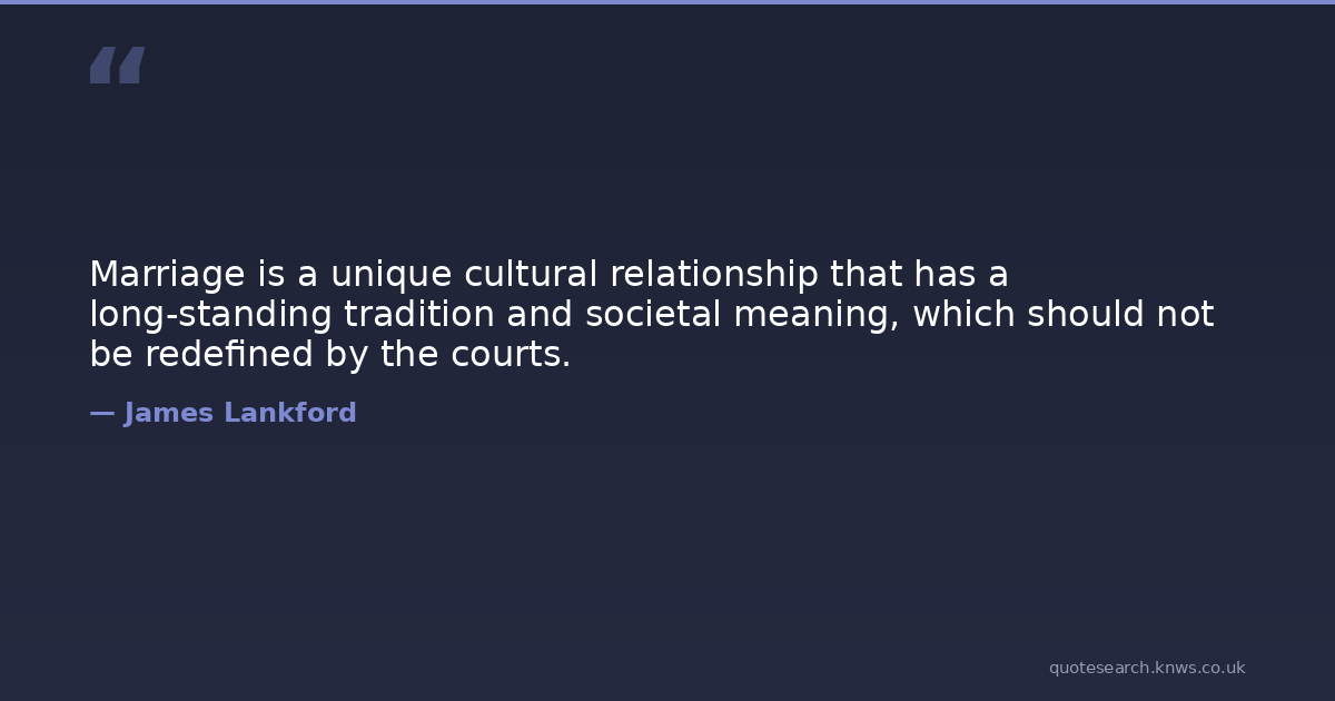Marriage is a unique cultural relationship that has a long-standing tradition and societal meaning, which should not be redefined by the courts.