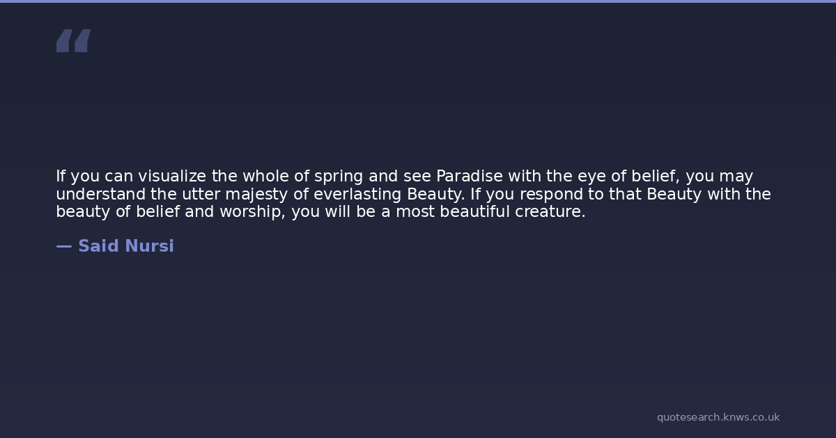 If you can visualize the whole of spring and see Paradise with the eye of belief, you may understand the utter majesty of everlasting Beauty. If you respond to that Beauty with the beauty of belief and worship, you will be a most beautiful creature.