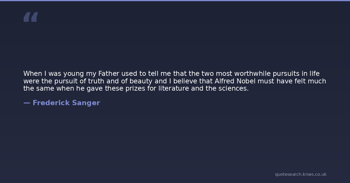 When I was young my Father used to tell me that the two most worthwhile pursuits in life were the pursuit of truth and of beauty and I believe that Alfred Nobel must have felt much the same when he gave these prizes for literature and the sciences.