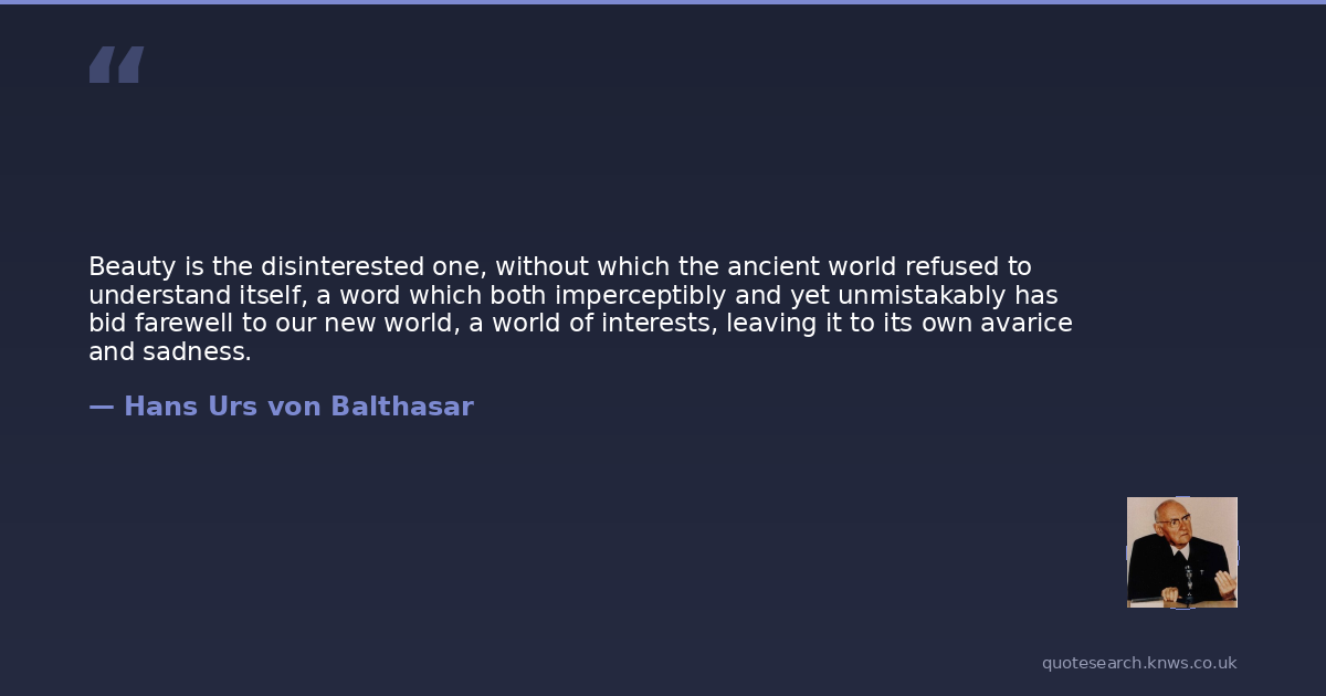Beauty is the disinterested one, without which the ancient world refused to understand itself, a word which both imperceptibly and yet unmistakably has bid farewell to our new world, a world of interests, leaving it to its own avarice and sadness.