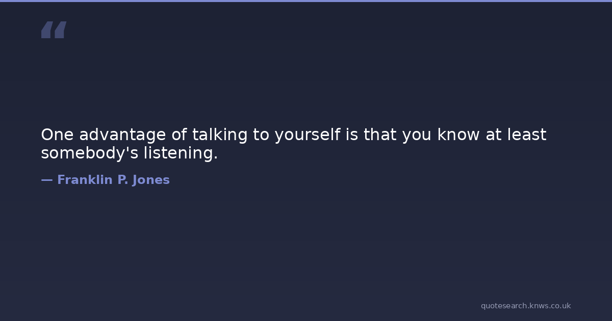 One advantage of talking to yourself is that you know at least somebody's listening. Listening Yourself Know Download Image Share on X Share on Facebook Copy Link