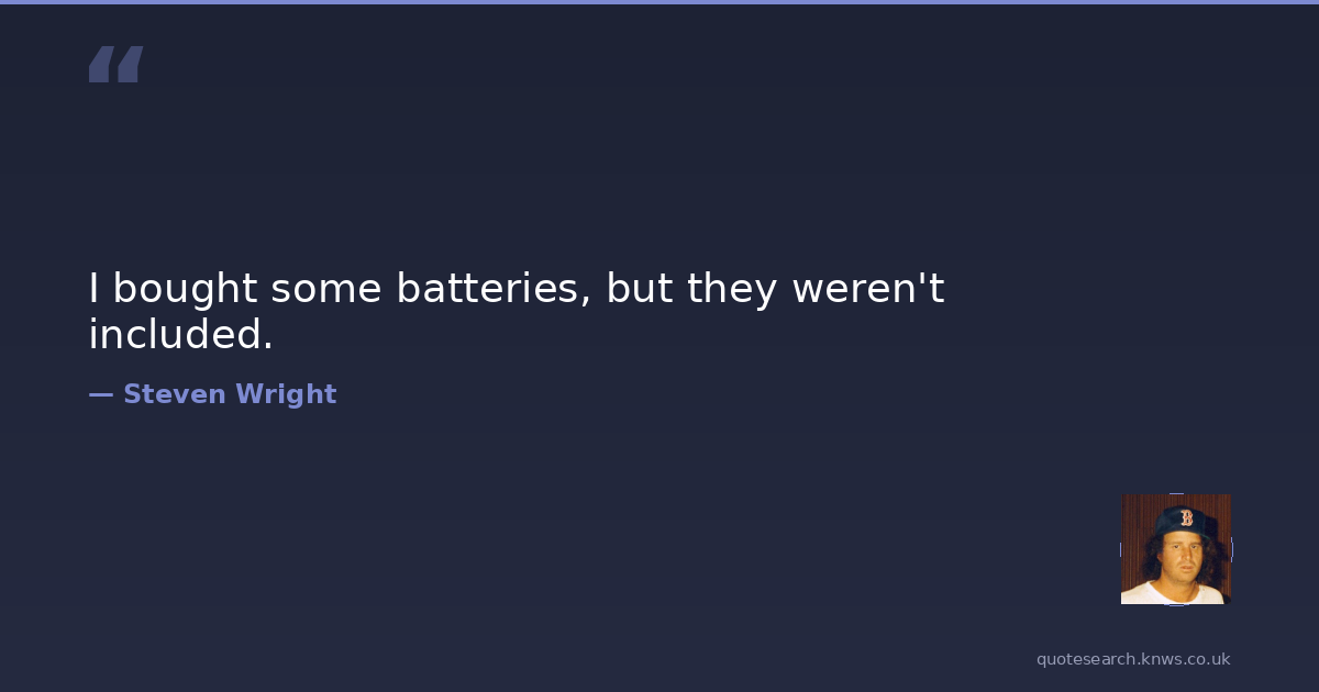 Steven Wright was a contemporary American comedian. Steven Alexander Wright is an American stand-up comedian, actor, writer and film producer. He is known for his distinctive lethargic voice and slow, deadpan delivery of ironic, philosophical and sometimes nonsensical jokes, paraprosdokians, non sequiturs, anti-humor, and one-liners with contrived situations. Read more on Wikipedia →