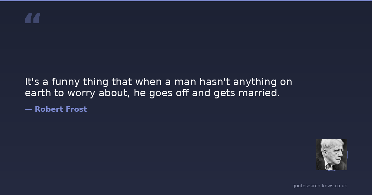 It's a funny thing that when a man hasn't anything on earth to worry about, he goes off and gets married.