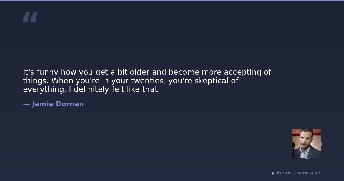 It's funny how you get a bit older and become more accepting of things. When you're in your twenties, you're skeptical of everything. I definitely felt like that.
