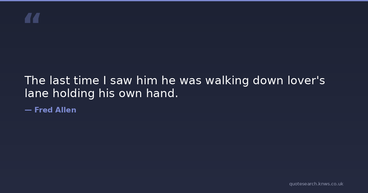 The last time I saw him he was walking down lover's lane holding his own hand.