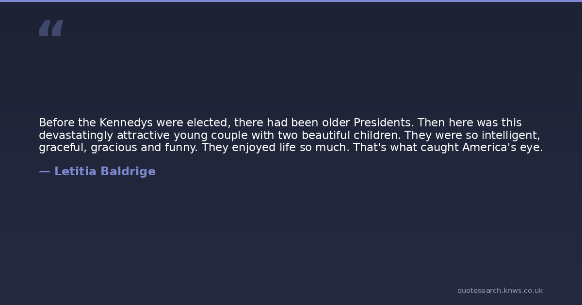 Before the Kennedys were elected, there had been older Presidents. Then here was this devastatingly attractive young couple with two beautiful children. They were so intelligent, graceful, gracious and funny. They enjoyed life so much. That's what caught America's eye.