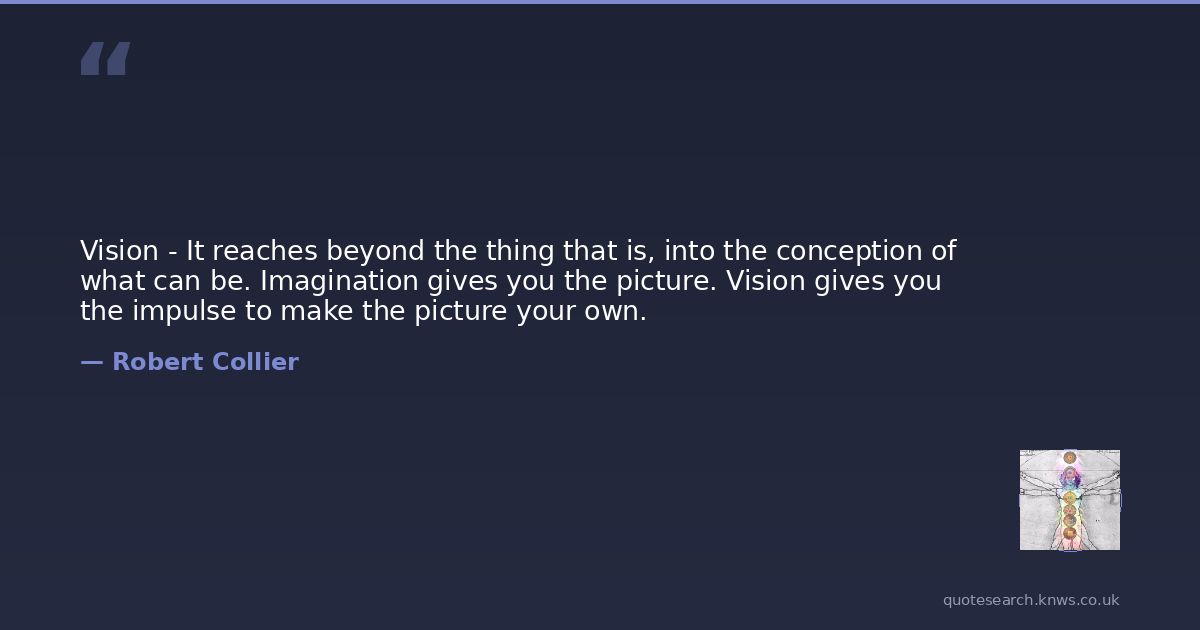 Vision - It reaches beyond the thing that is, into the conception of what can be. Imagination gives you the picture. Vision gives you the impulse to make the picture your own.