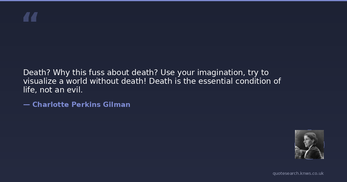 Death? Why this fuss about death? Use your imagination, try to visualize a world without death! Death is the essential condition of life, not an evil.
