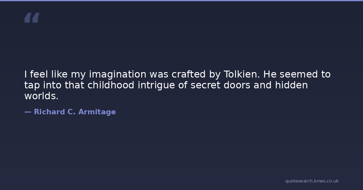 I feel like my imagination was crafted by Tolkien. He seemed to tap into that childhood intrigue of secret doors and hidden worlds.