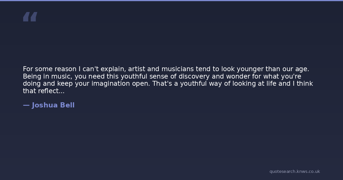 For some reason I can't explain, artist and musicians tend to look younger than our age. Being in music, you need this youthful sense of discovery and wonder for what you're doing and keep your imagination open. That's a youthful way of looking at life and I think that reflects in how you age.