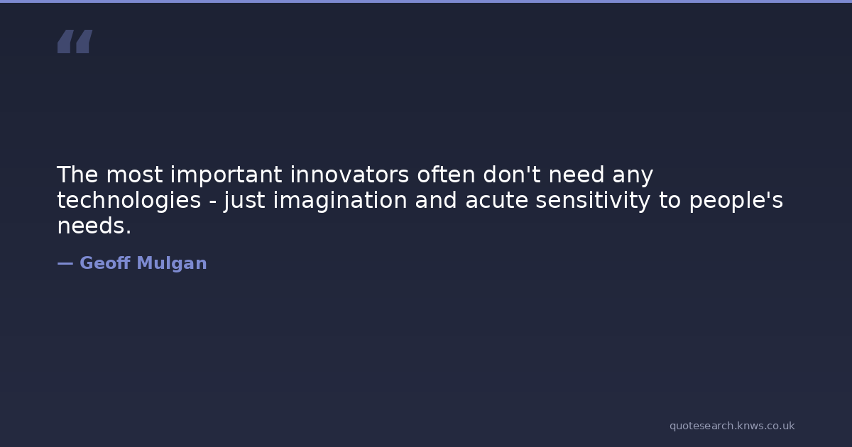 The most important innovators often don't need any technologies - just imagination and acute sensitivity to people's needs.